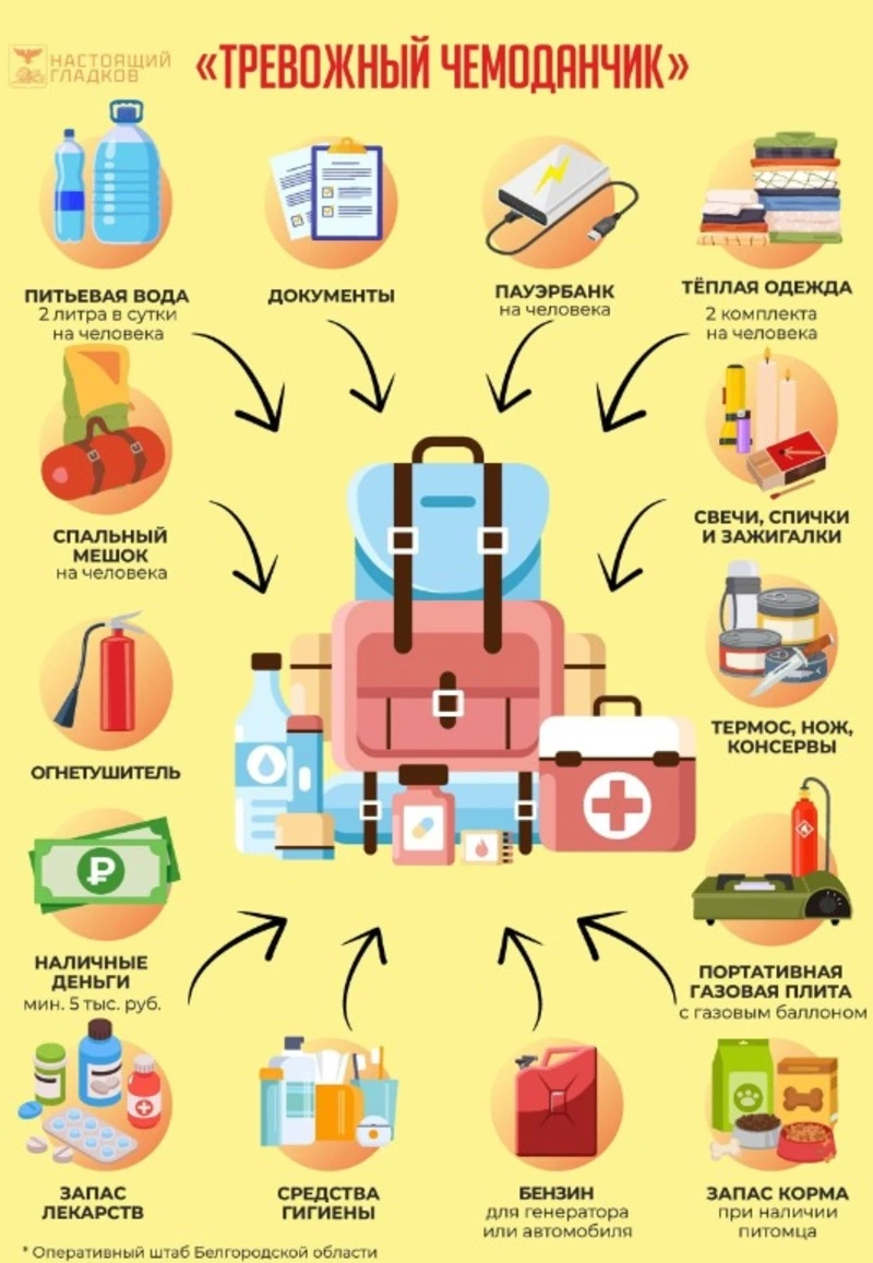 Губернатор Гладков опубликовал для белгородцев список «Тревожного чемоданчика»