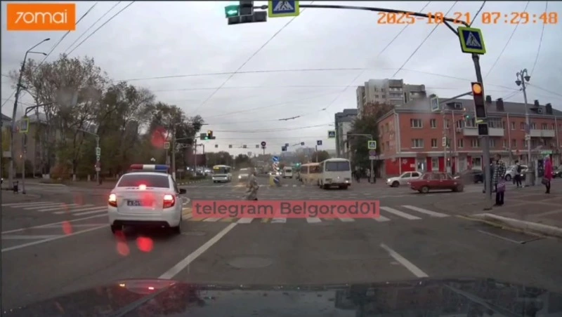 Девушка чуть не попала под колёса автомобиля ДПС в Белгороде, перебегая дорогу ради своего автобуса. Камеры видеонаблюдения и видеорегистраторы водителей-очевидцев запечатлели момент происшествия.