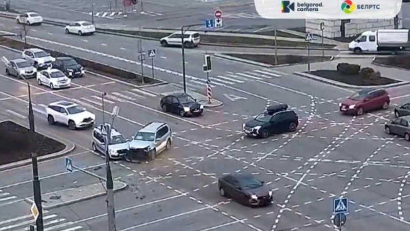 Три автомобиля столкнулись на пересечении Щорса и Пригородной в Белгороде. Момент аварии зафиксировали уличные камеры наблюдения утром в четверг.