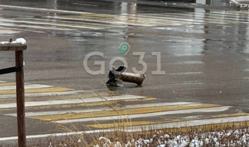 По сообщениям белгородцев, после работы систем противовоздушной обороны на перекрёстке Попова и Белгородского проспекта лежит разгонный блок от ракеты ПВО.