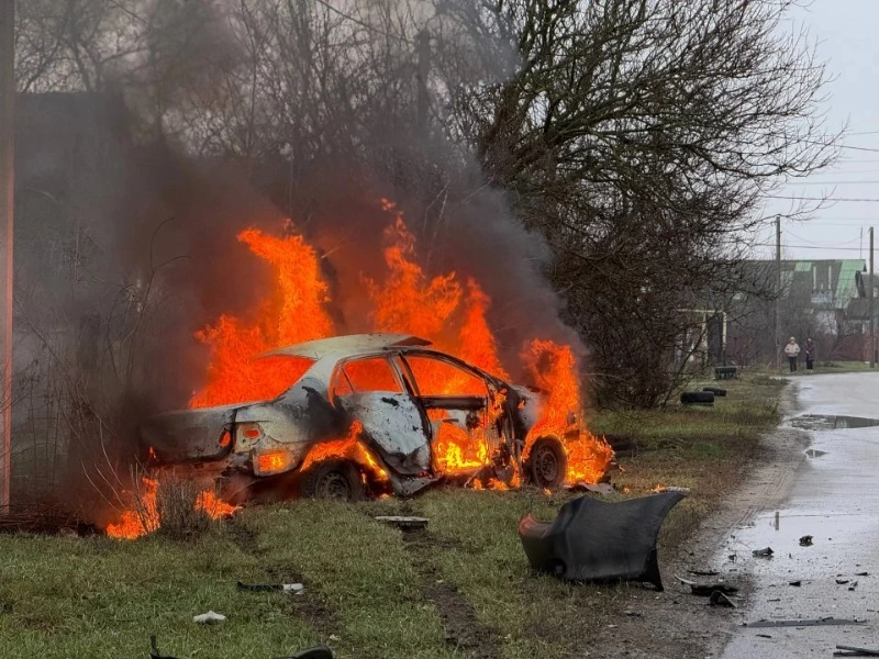 В результате удара БПЛА мужчина скончался на месте, машина полностью сгорела.