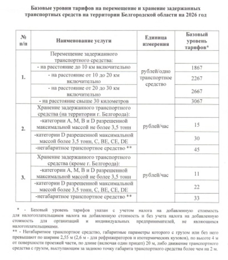 Новые базовые тарифы на перемещение и хранение задержанного транспорта начнут действовать в Белгородской области в 2026 году. Приказ регионального управления по государственному регулированию цен и тарифов вступит в силу с 1 января 2026 года.