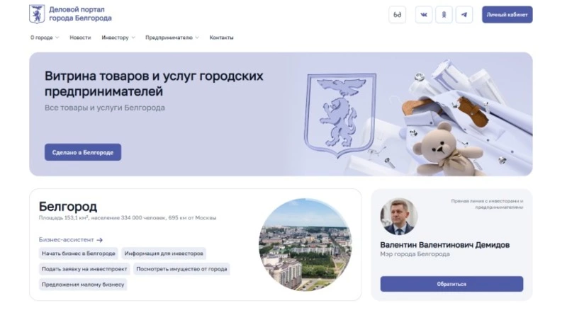Площадка получила название «Деловой портал города». Здесь собрана информация о мерах поддержки бизнеса, размещены разделы для инвесторов, для самих предпринимателей и платформа для прямого взаимодействия. Градоначальник рекомендовал обратить внимание на витрину товаров и услуг «Сделано в Белгороде», где производители смогут продвинуть свою продукцию на рынке товаров и услуг.