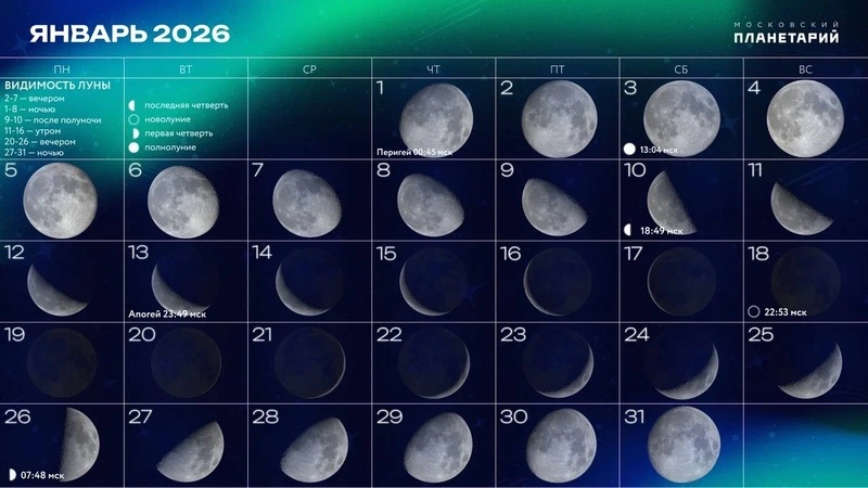 Из-за близкого нахождения Земли к Луне, 360 тысяч км, можно наблюдать самый большой лунный диск в году. В 13:04 начнётся полнолуние в созвездии близнецы: в это время Луна будет на 15% ярче и почти на 8% больше среднего полнолуния, поэтому явление называется суперлунием. Всего в течение 2026 года ожидается три таких полнолуния. Астрологи называют январское суперлуние Волчьей Луной.