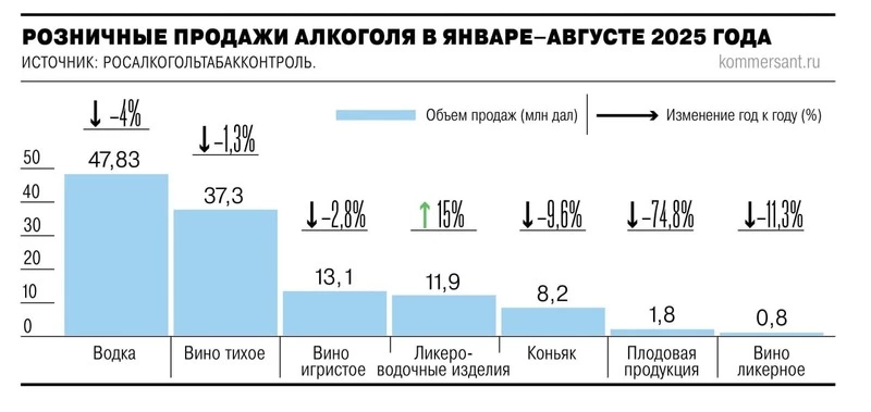 С 1 января 2026 года акцизы на алкоголь вырастут на 8,9-31%, что приведет к повышению розничных цен, пишет «Коммерсант».