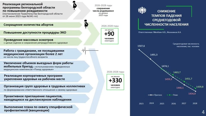 Региональный Минздрав предлагает увеличить доступность процедур ЭКО, проведения массовых осмотров с целью оценки и сохранения репродуктивного здоровья. Прирост в период с 2026-2028 годы должен составить не менее 90 человек ежегодно.