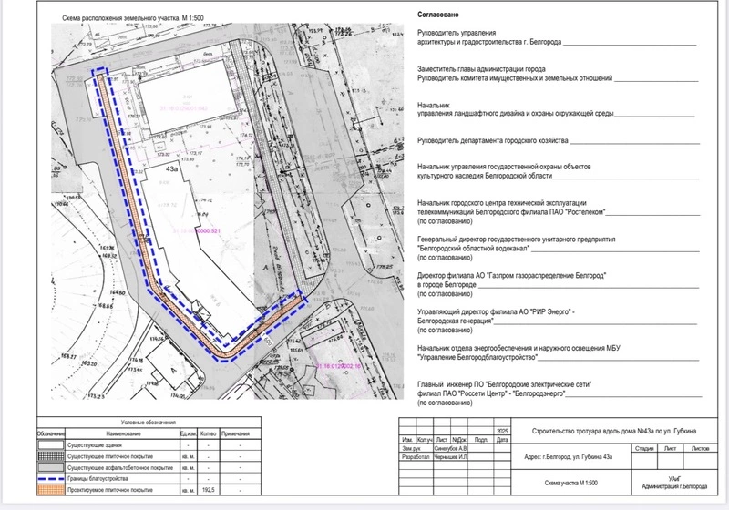 Благоустройство пешеходной дорожки в районе Губкина, 43а обойдётся в 1,3 млн рублей. Подрядчик выложит на участке 144 кв. м. плитки, заменит бортовые камни и выполнит работы по озеленению до 5 декабря.