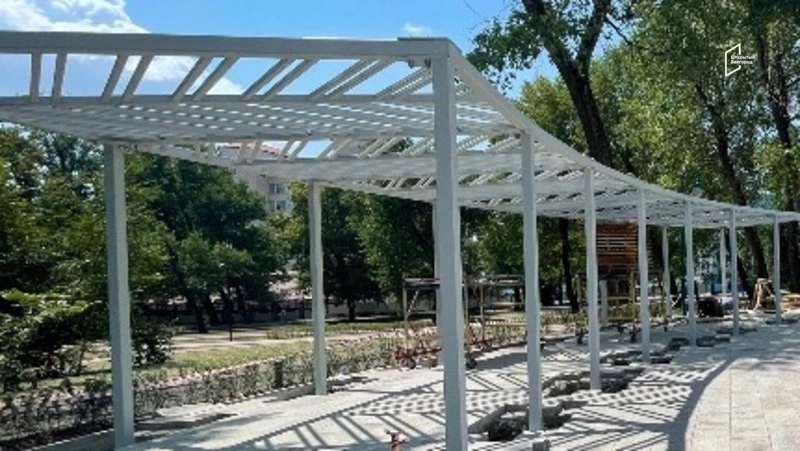 Согласно техническому заданию, подрядчик установит бирюзовую перголу с навесом, две урны, четыре камеры наружного наблюдения и оборудование для их работы. Для функционирования системы видеонаблюдения специалисты также проложат в земле трубы и кабели. Завершить работы планируется до 1 мая 2026 года.