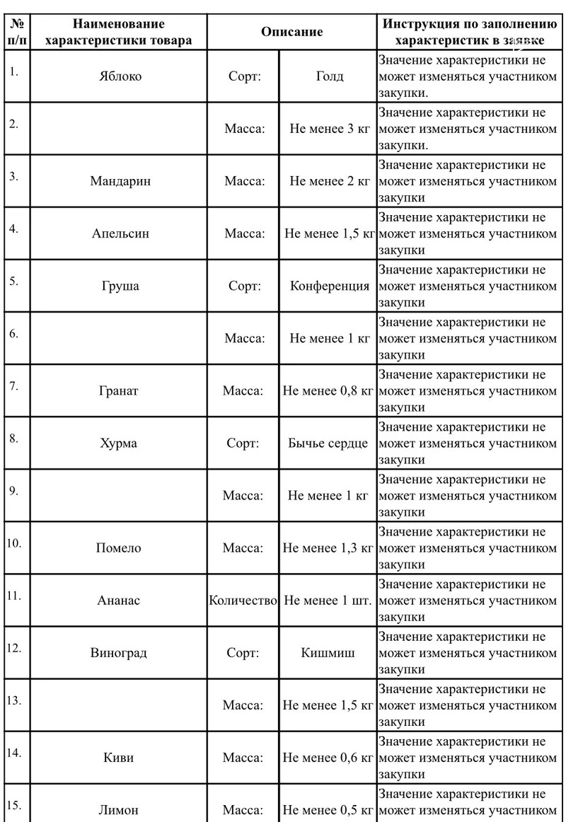 Согласно техническому заданию, исполнителю предстоит поставлять фрукты по заявкам мэрии до конца 2026 года. В состав наборов войдут: ананасы, помело, апельсины, мандарины, виноград, гранат, киви, лимоны, яблоки и груши. Перечень наименований может корректироваться. Угощения должны быть качественными и свежими, с остаточным сроком годности не менее 80% на момент поставки.