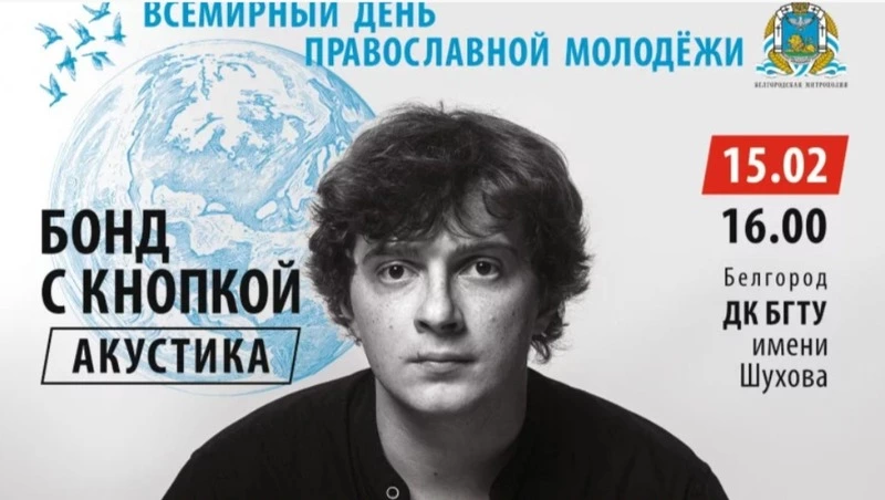 15 февраля с 16:00 до 18:00 в Студенческом дворце БГТУ пройдёт благотворительный акустический концерт группы «Бонд с кнопкой», приуроченный ко Всемирному дню православной молодёжи. Коллектив исполнит музыку в жанрах альтернативного попа и инди-рока. Прозвучат песни «Сидр», «Камушки» и главный хит «Кухни», который в 2025 году принёс группе звание «Группа года». Вход свободный и не требует предварительной записи.