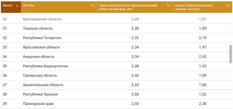 Белгородская область заняла 30-ю строчку рейтинга регионов по сроку накопления на первоначальный срок по ипотеке. По информации РИА Новости, белгородцам потребуется 3,28 лет, чтобы собрать 1,6 млн рублей на первоначальный ипотечный взнос.