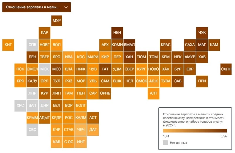 В Липецкой области среднемесячная зарплата в малых и средних населённых пунктах составила 65,6 тысячи рублей. Этого дохода достаточно для покупки 3,01 фиксированного набора товаров и услуг. Липецкая область расположилась на 29-м месте в рейтинге.