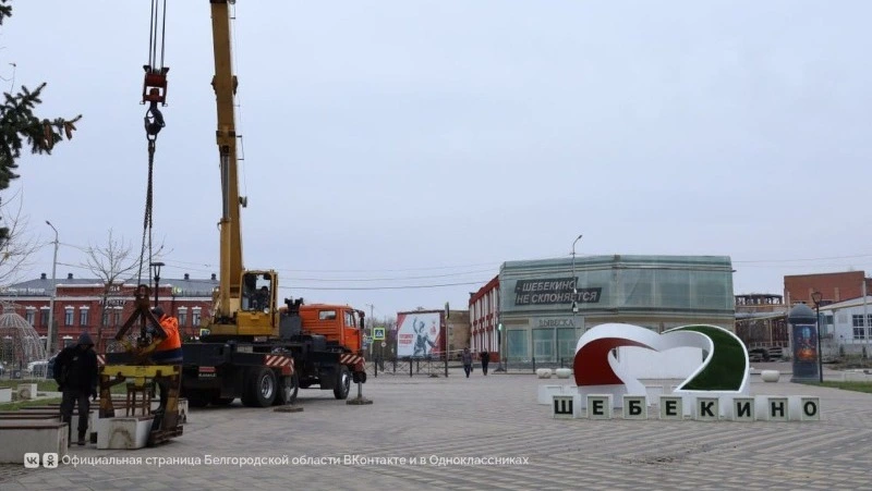 Конструкцию разместят на площади возле Шебекинского Модельного Дворца культуры. На месте уже демонтируют старые скамейки, чтобы заменить на новые.