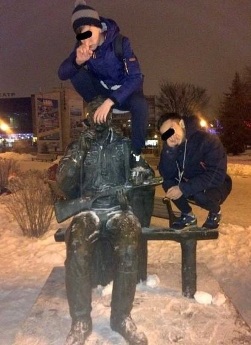 Фото школьника, забравшегося на памятник в ИЖС Сосенки, привлекло внимание правоохранителей в ходе мониторинга соцсетей. Жители микрорайона и другие пользователи также не оценили провокационный снимок.
