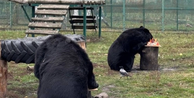 Для медведиц сотрудники питомника приготовили рыбные торты, украшенные импровизированными свечами из морковки, а гости зоопарка спели для медведей колыбельную.