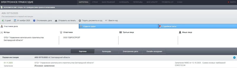 УКС Белгородской области подало очередной очередной иск на к застройщику «Еврострою», следует из картотеки регионального Арбитражного суда.