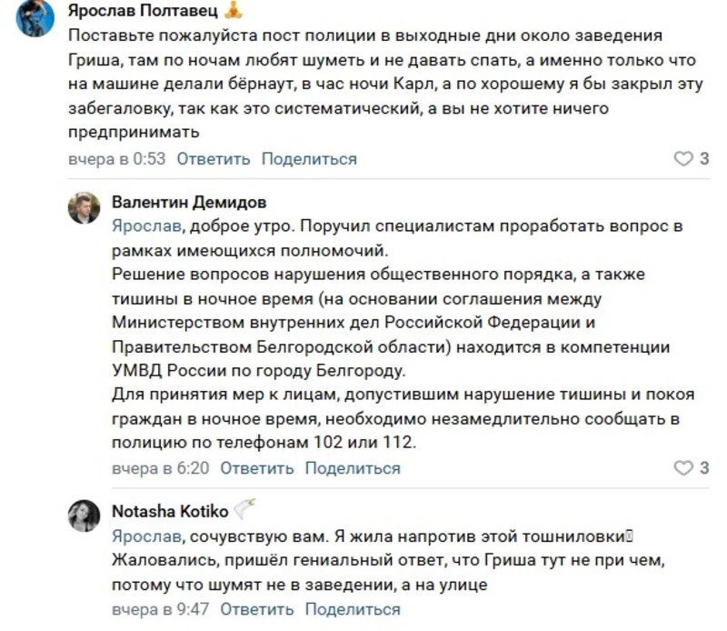 На обращение отреагировал глава горадминистрации Валентин Демидов, который заявил, что поручил специалистам разобраться в ситуации, а при выявлении нарушений закона о тишине жители города могут обратиться в полицию.