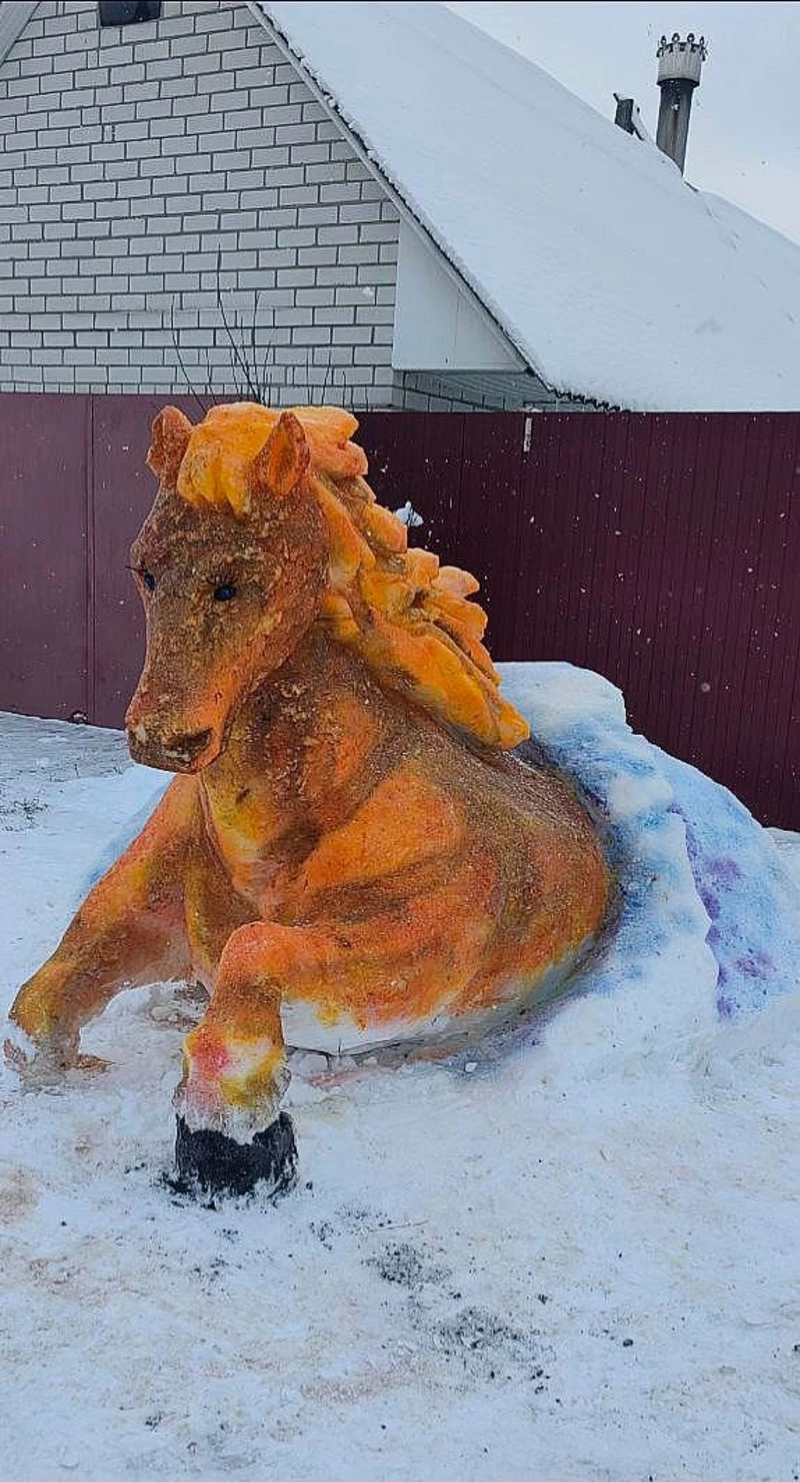 В Валуйках местный житель украсил свою придомовую территорию необычной скульптурой. Во дворе валуйчанина появилась снежная лошадь, созданная в честь наступившего Года Красной Огненной Лошади. Фигура быстро привлекла внимание горожан и стала поводом для обсуждений в местных телеграм-каналах.