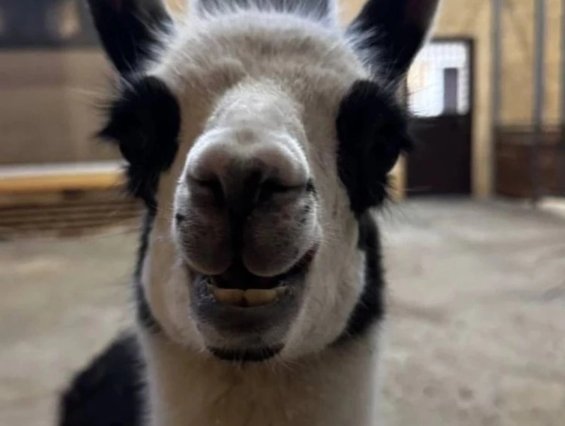 Альпаку вместе с мамой, Леди-Маришкой, уже перевели в общий вольер. Теперь они живут вместе с Кефирчиком и папой Гудвином.