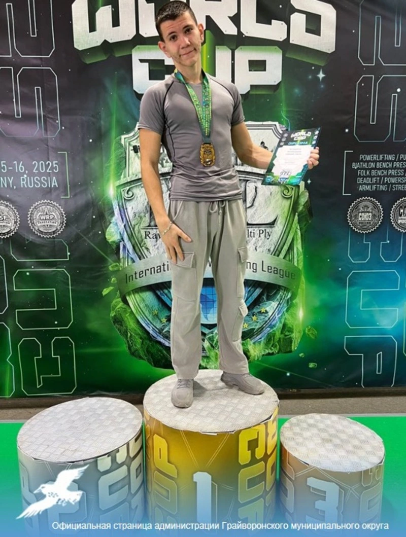 Спортсмен из Белгородской области Даниил Посиний стал победителем Кубка мира по пауэрлифтингу и стритлифтингу, сообщили в пресс-службе администрации Грайворонского округа.