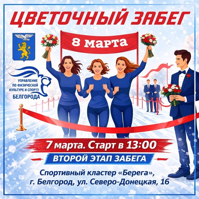 Праздничный забег пройдёт в спорткластере «Берега» 7 марта в 13:00. Каждая участница получит в подарок медали и цветы. Мужчины могут посетить мероприятие, надев строгий костюм.