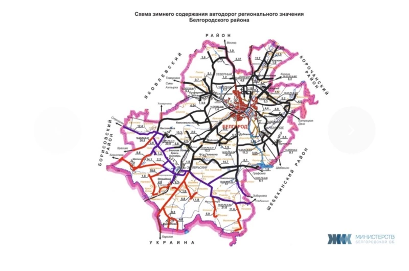 Региональные и муниципальные власти совместно разработали тепловые карты эксплуатации и обслуживания дорог с учётом оперативной обстановки. Никакие работы на дорогах в отселённых населённых пунктах и на ведущих к ним трассах вестись не будут, на схеме они обозначены красным цветом. На отмеченных синим приграничных территориях, подвергающихся обстрелам, поверхностная уборка снега и оперативная посыпка пескосоляной смесью будет производиться только в светлое время суток. Выделенные на карте черным дороги будут обслуживаться в штатном режиме.