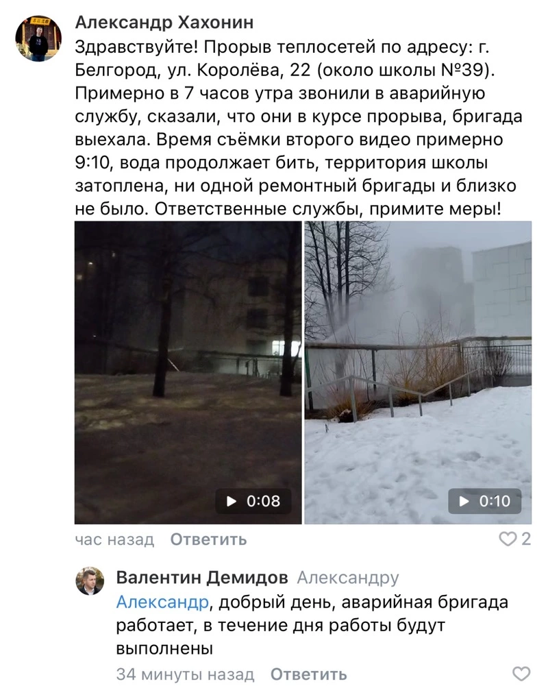 На ситуацию отреагировал мэр города Валентин Демидов, который сообщил, что авария будет устранена в течение дня.